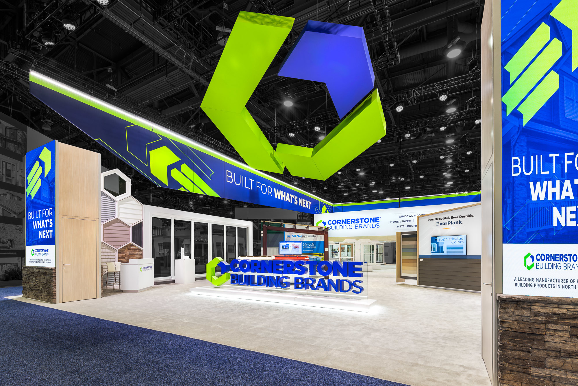 When Cornerstone Building Brands needed to showcase four distinct business units in a compact booth space, Hamilton proved that size is no limitation with strategic graphic design. The exhibit expertly maximized every square foot through bold graphics and striking colors that commanded attention. The "Built for What's Next" campaign was woven throughout the space, with distinct areas dedicated to Windows and Doors, Metal Structures, Surface Solutions, and Canada Solutions. Each section featured total solutions vignettes that brought Cornerstone's products to life in cohesive, engaging displays. The result? An impressive 1,046 unique leads were captured through Hamilton inSIGHT®, demonstrating how thoughtful graphic design transforms a space into a powerful lead-generation engine.